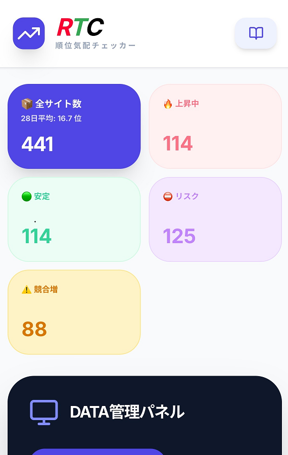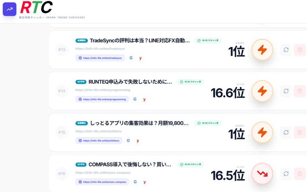 実測順位1位・平均順位16.1位という状態は、 今後順位が調整・下落するリスクを内包していますか? RTCの推移データから、 下落予兆の有無と注意すべきポイントを教えてください。 |